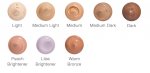 Występuje w 5 tonacjach od jasnej do ciemnej,  jak również jest dostępny w 2 tonacjach jako rozświetlacz: