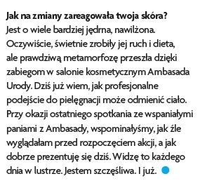 Zmniejszyły się nie tylko wymiary Alżbety, lecz także jej samopoczucie. Pewność siebie jest ważna dla aktorki, ale ważna jest również dla każdej kobiety bez względu na zawód, każda kobieta, każda młoda mama chce czuć się dobrze w swoim ciele.